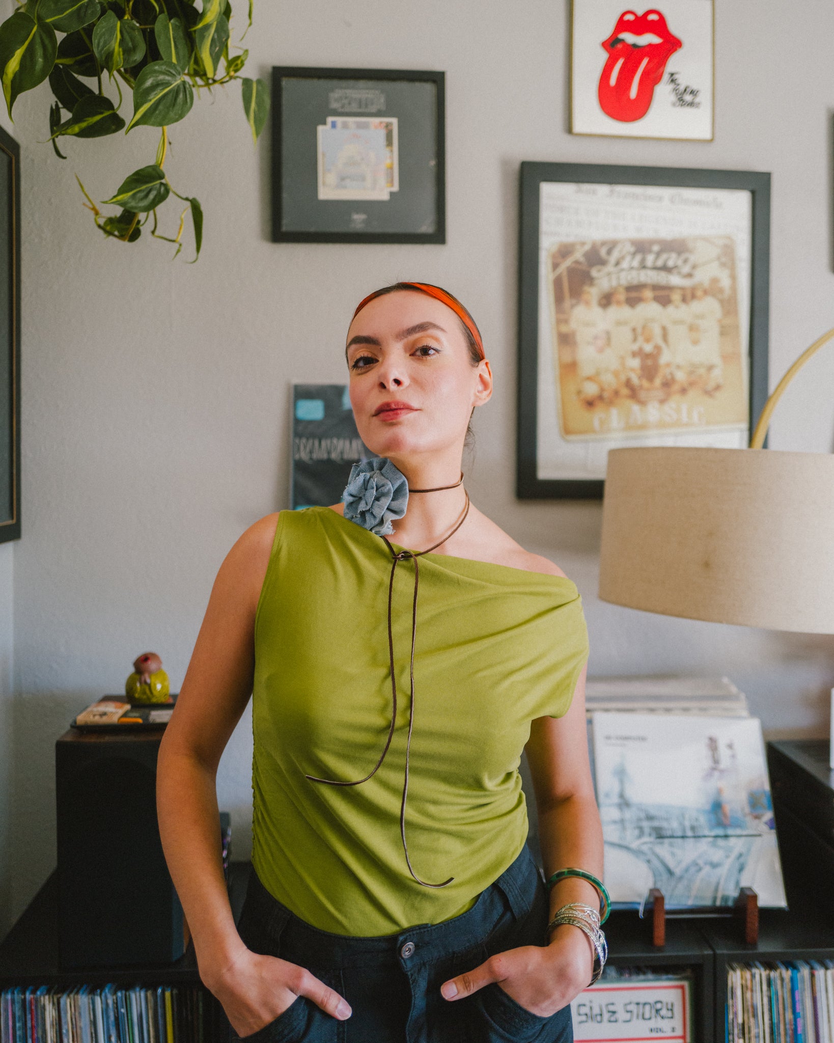 Upcycled Denim Rosette Choker w/ Suede Tie